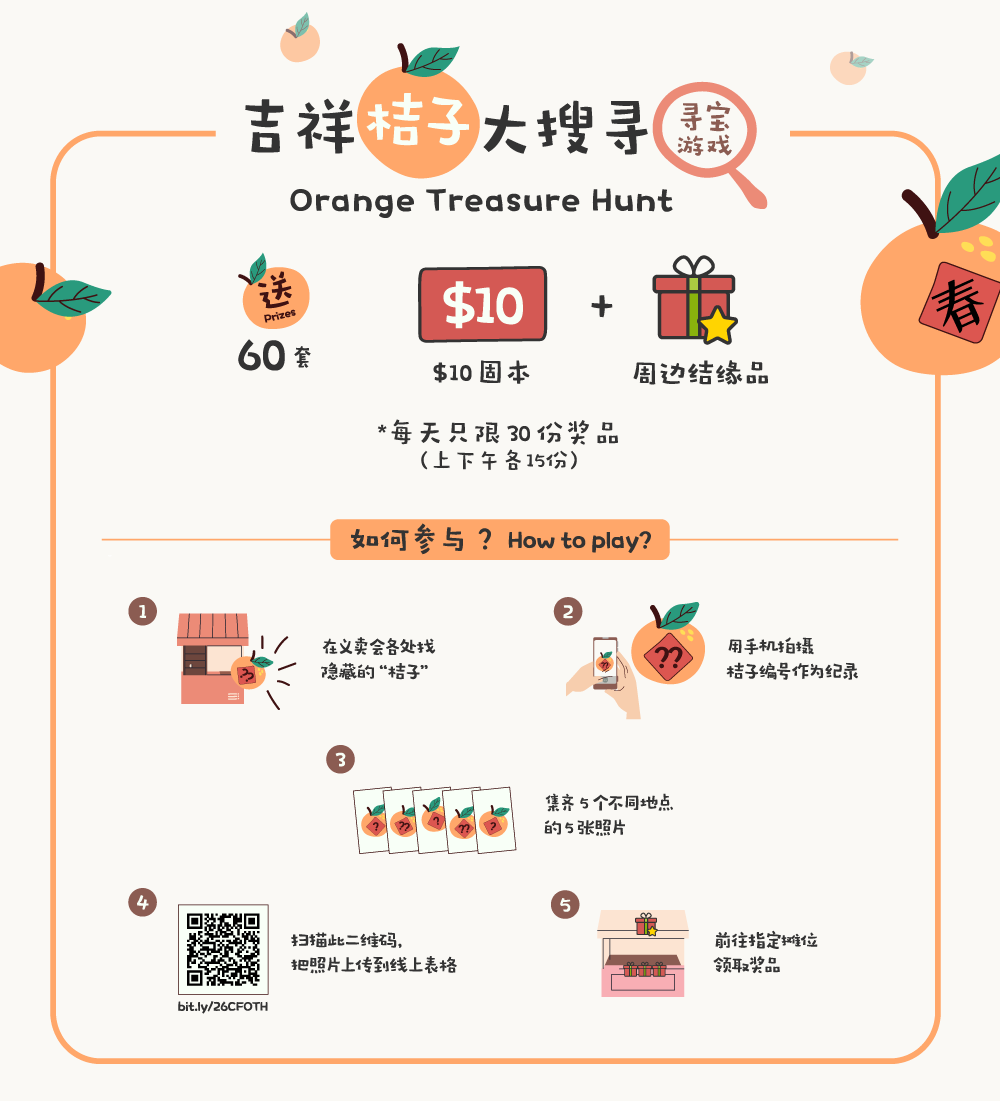 两天义卖会热闹欢腾、应有尽有——36个新年年货摊位、38 个蔬食美食摊位、舞台表演、互动游戏…… 有奖游戏“吉祥桔子大搜寻”首次推出,等您来挑战!